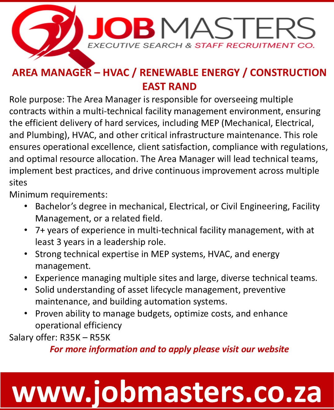 Role purpose: The Service & Maintenance Manager is responsible for overseeing multiple contracts within a multi-technical facility management environment, ensuring the efficient delivery of hard services, including MEP (Mechanical, Electrical, and Plumbing), HVAC, and other critical infrastructure maintenance. This role ensures operational excellence, client satisfaction, compliance with regulations, and optimal resource allocation. The Area Manager will lead technical teams, implement best practices, and drive continuous improvement across multiple sites