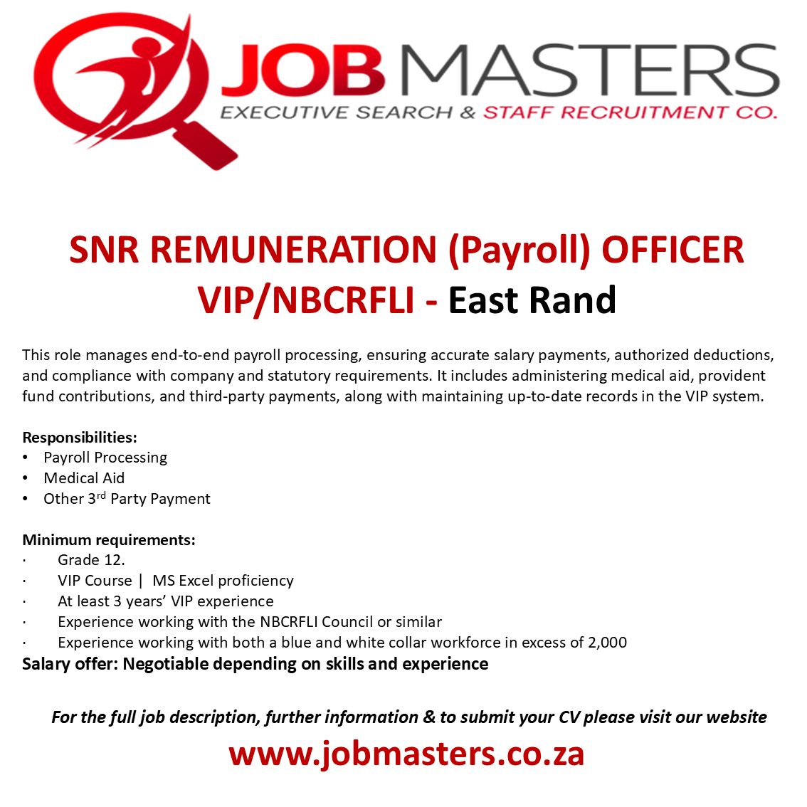 Salary offer: Negotiable dependant on skills and experience