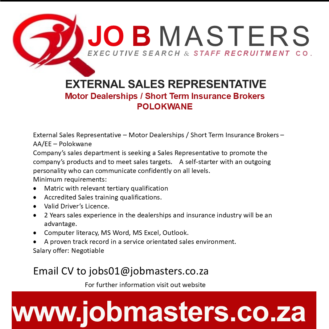 External Sales Representative – Motor Dealerships / Short Term Insurance Brokers – AA/EE – Polokwane